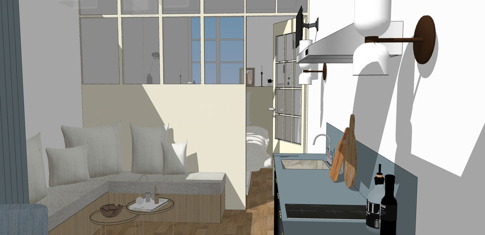 L'Objectif avec ce studio de 17m² était de créer un espace fonctionnel et élégant, où chaque mètre carré est exploité intelligemment. Que ce soit pour une kitchenette ou un espace de détente, il faut des solutions sur mesure adaptées à votre mode de vie. En jouant avec les matériaux, la lumière et les couleurs, j'ai crée une atmosphère cosy et moderne, idéale pour un studio de cette taille.